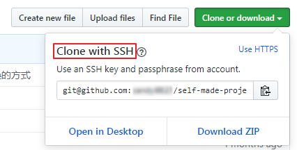 使用账号打开GitHub,同时打开自己的工程,在Clone or download 下拉之后,选择 use SSH,拷贝 输入框中的内容到 Git GUI 界面中。