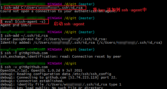 如果使用 Git for windows 这种类似的中断,可以使用命令 开启 ssh-agent