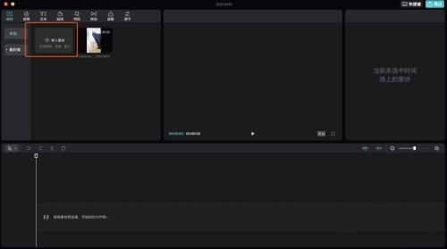 2、点击导入素材功能,选择需要剪辑的视频素材文件。