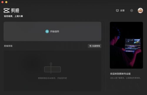1、首先打开电脑版剪映软件,进入后点击开始创作按钮。