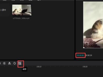4、点击裁剪图标,默认让视频文件处于开始的位置,然后点击界面右下角的裁剪图标。