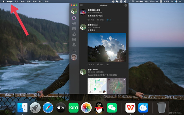 2、观察到桌面左上角有Maipo图标,点击“Maipo系统偏好设置。