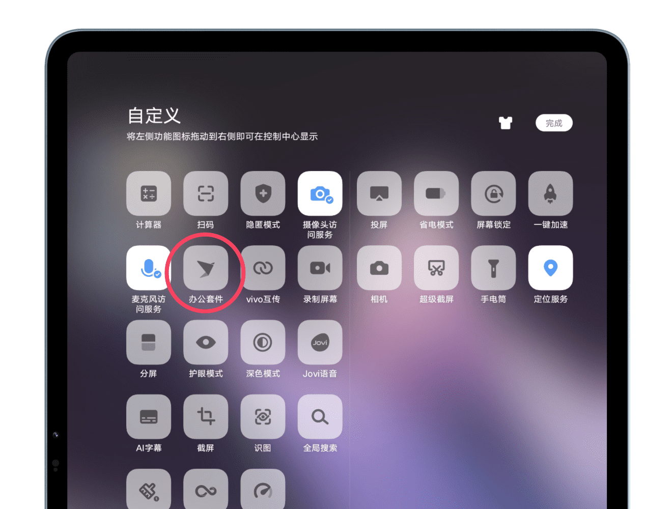 1、在手机/平板电脑上打开“控制中心” > “办公套件”,进入办公套件页面。
