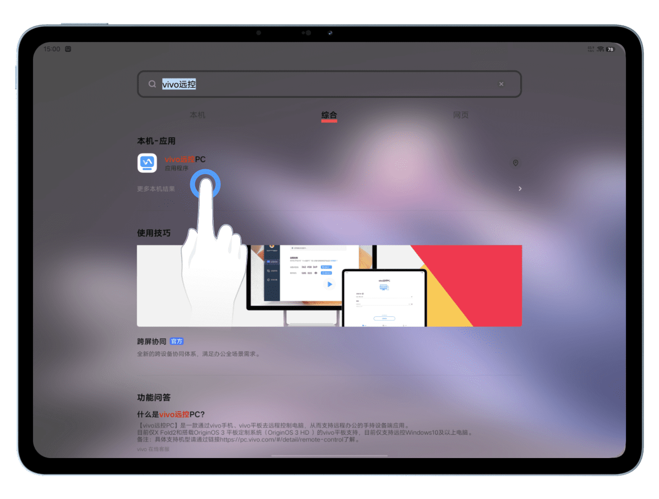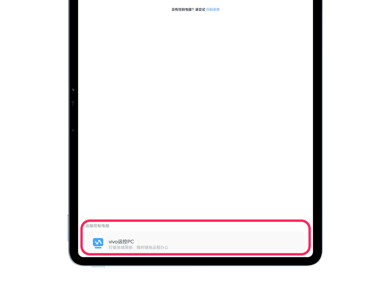 第三步:打开手机、平板电脑的 vivo远控PC