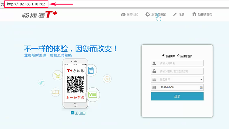 下面以WEB应用为例,通过服务器内网IP(192.168.1.101)加上服务端口(82),能够成功显示出来办公系统的页面,证明本地服务搭建完成。
