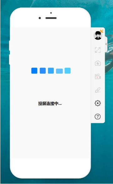 4、软件会自动识别您的设备并开启USB投屏服务,您会看到“投屏连接中”的提示文本,然后等待投屏成功即可。