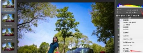 选择多张raw照片一起拖进ps中,会自动使用Camera raw打开,此时左上角就是多张照片。同时会出现全选和同步两个按钮