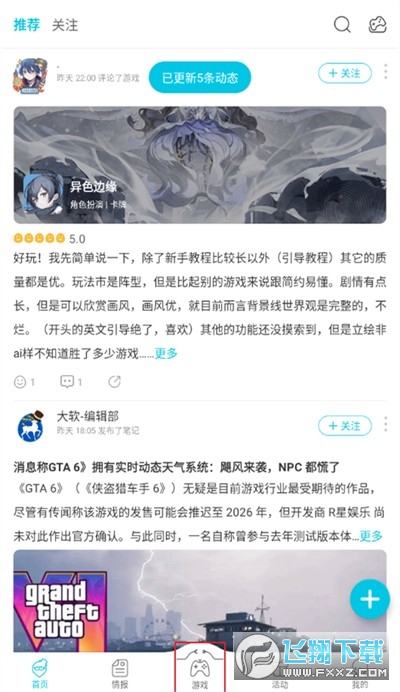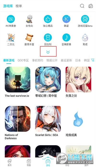 1、首先打开qooapp,进入首页后点击界面下方的【游戏】选项;