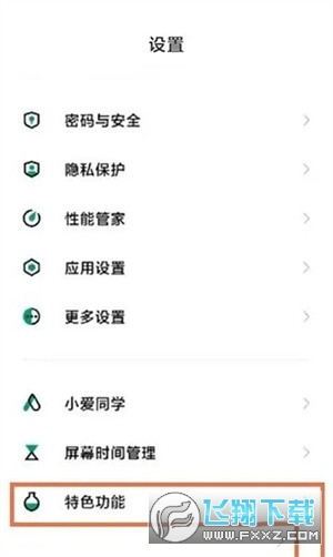 1、首先下载黑鲨游戏空间app,进入软件打开手机设置,点击【特色功能】;