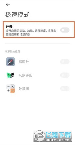 4、将【开关】后面的开关打开即可切换成极速模式。