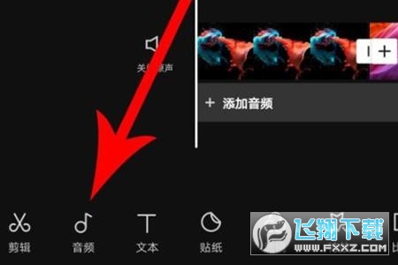2、导入完成之后即可进入到“视频编辑”界面,在该界面我们就可以在底端点击选择“音频”功能,在下方列表中点击“音乐”按钮,找到自己感兴趣的在线卡点歌曲。