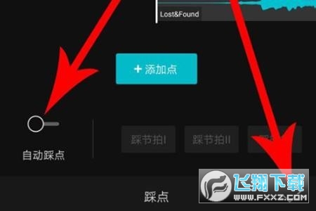 5、打开“卡点”功能之后,我们就可以点击左侧的“自动卡点”按钮,这样就能将每次卡点的节奏用黄点标注出来。