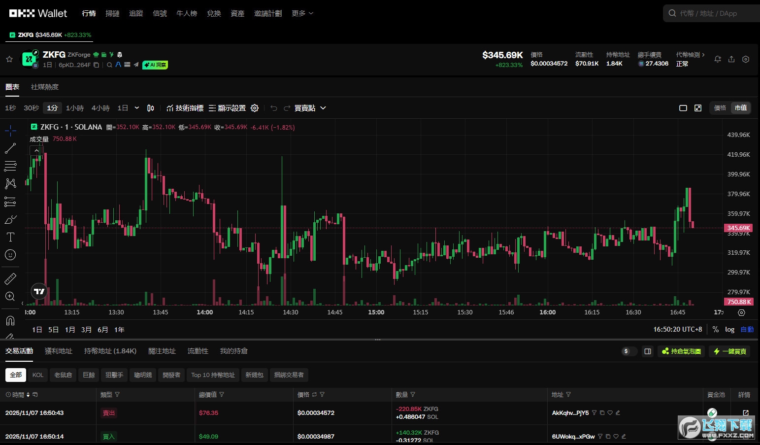 在搜索栏输入 ZKFG 的名称或合约地址,或在行情页面的列表中查找。